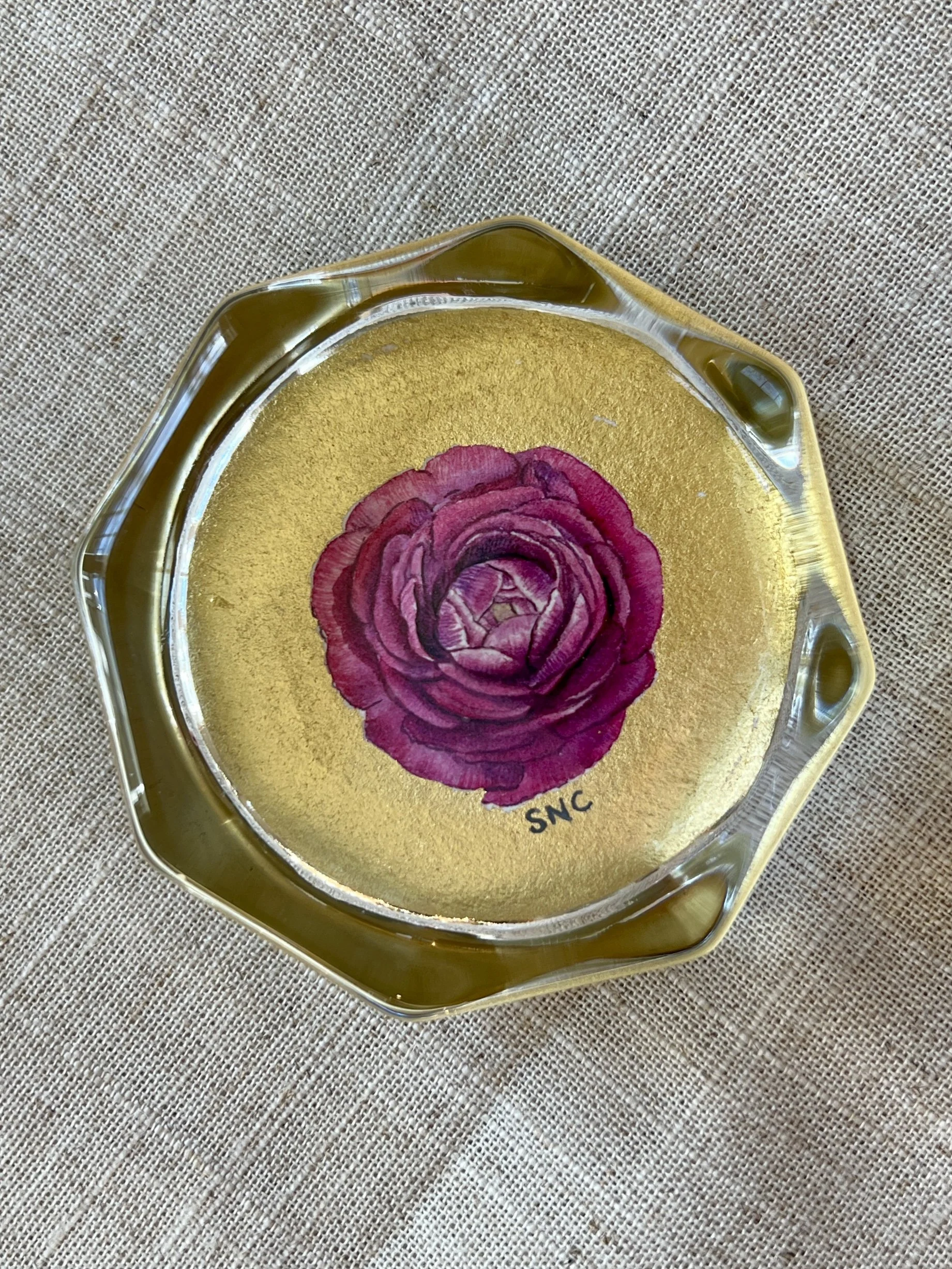 Ranunculus Gem. Glass paperweight. Watercolor and 22 karat gold.